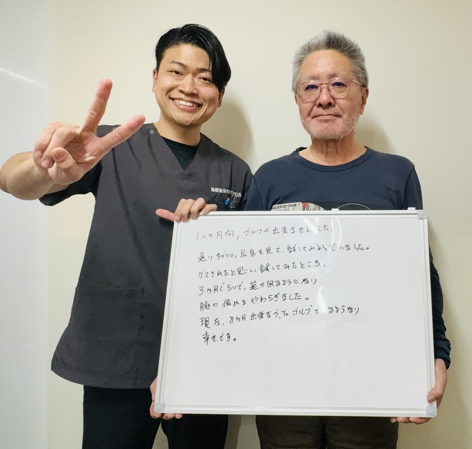 「ゴルフ肘と腱鞘炎でゴルフが出来ませんでしたが、冨尾先生のおかげで出来るようになりました!」