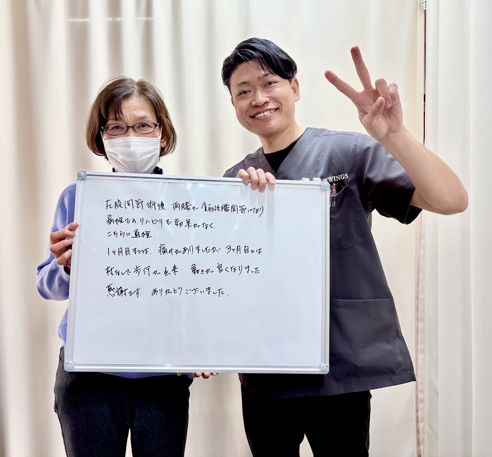 「膝に激痛が走っていましたが、WINGSに通ってようやく普通に戻りました!この先も長〜くお世話になる予定です。」